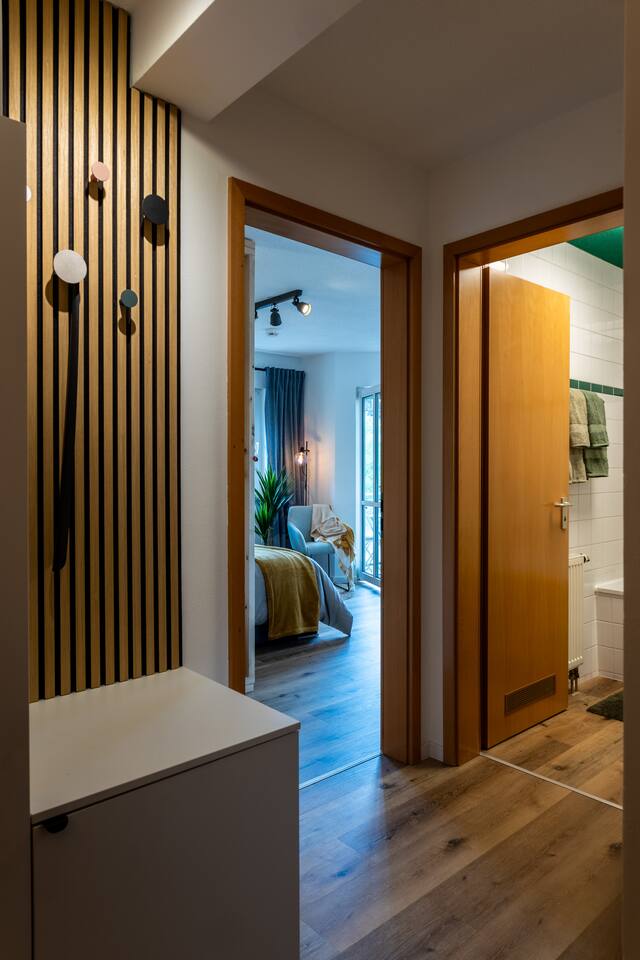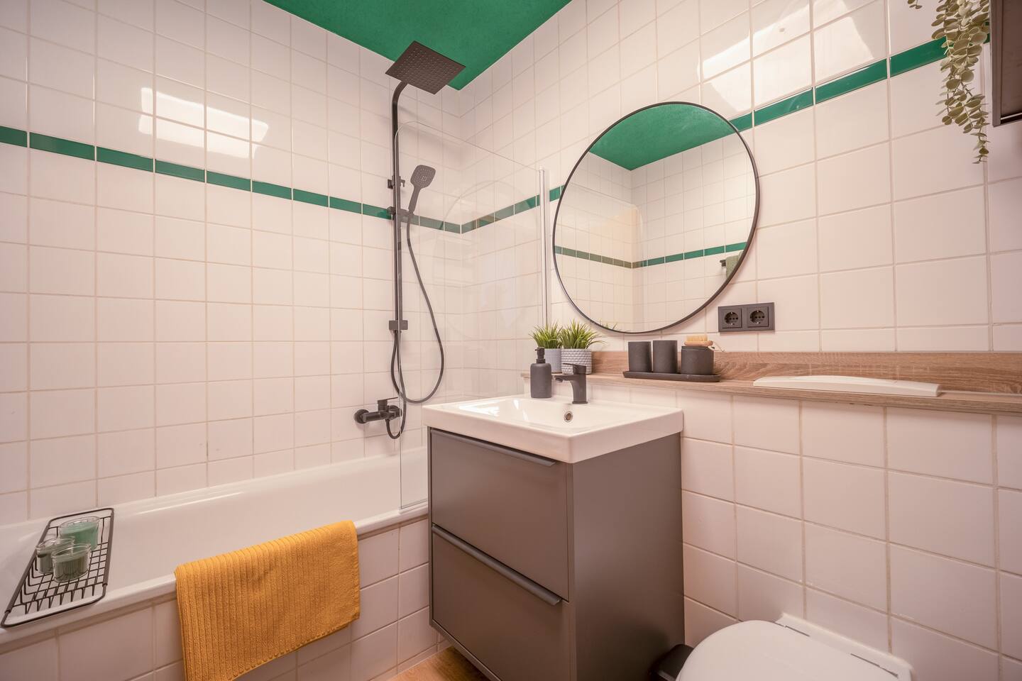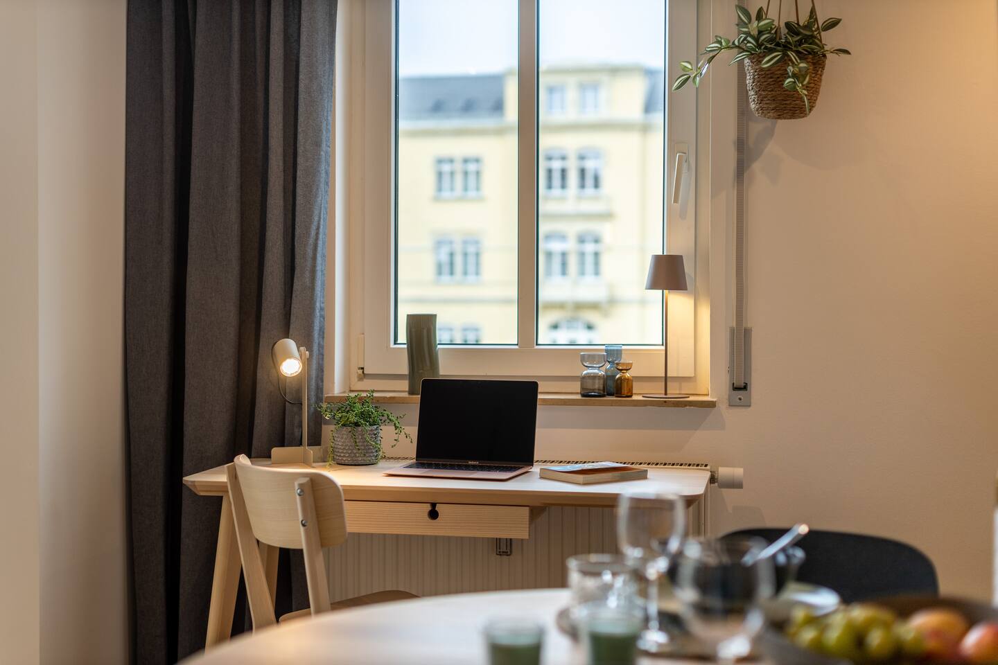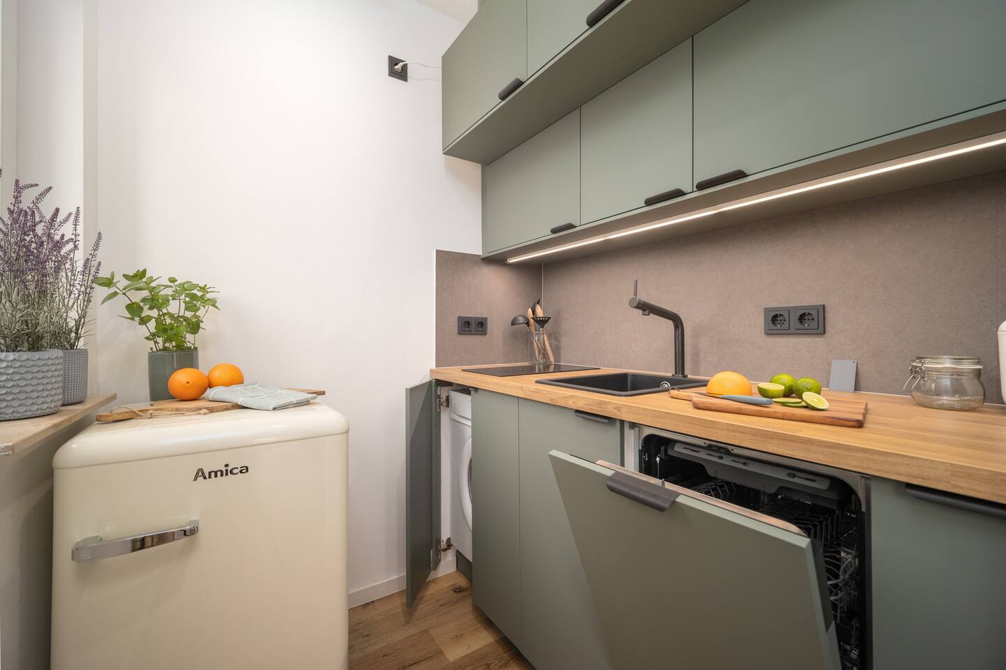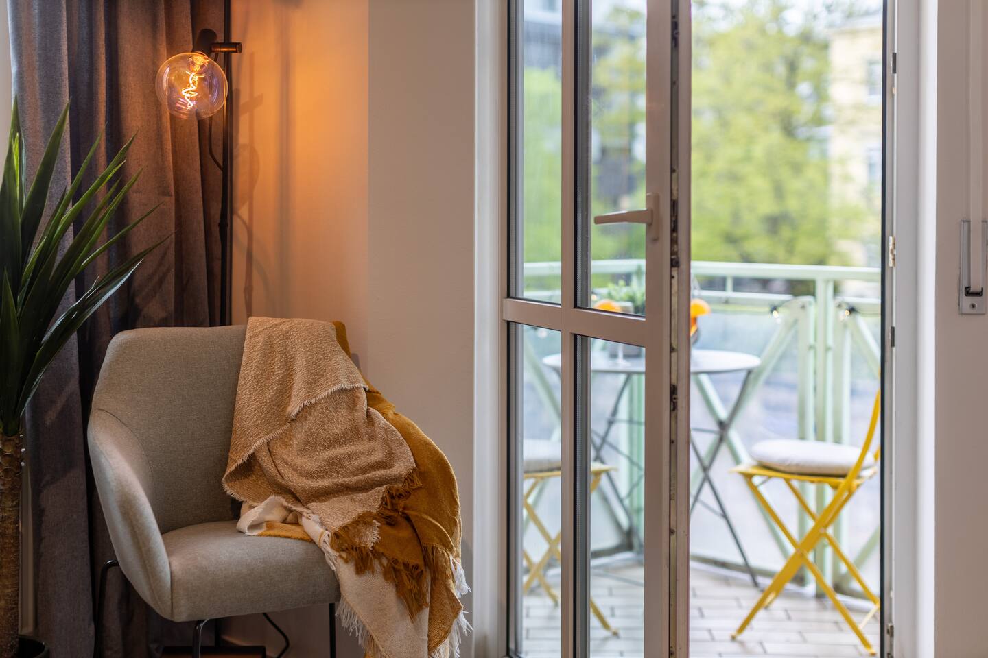 Relax in the cozy queen-size bed, make use of the well-equipped kitchen, and work comfortably at the desk. The modern bathroom offers a relaxing atmosphere. On the small balcony, you can enjoy views of the Neptunbrunnen.