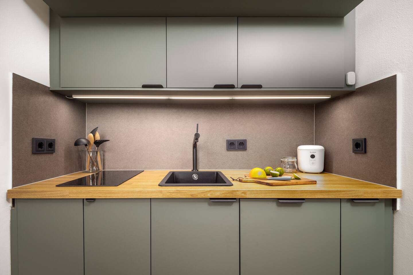 - Küche Bereich, in dem Gäste ihre eigenen Mahlzeiten zubereiten können