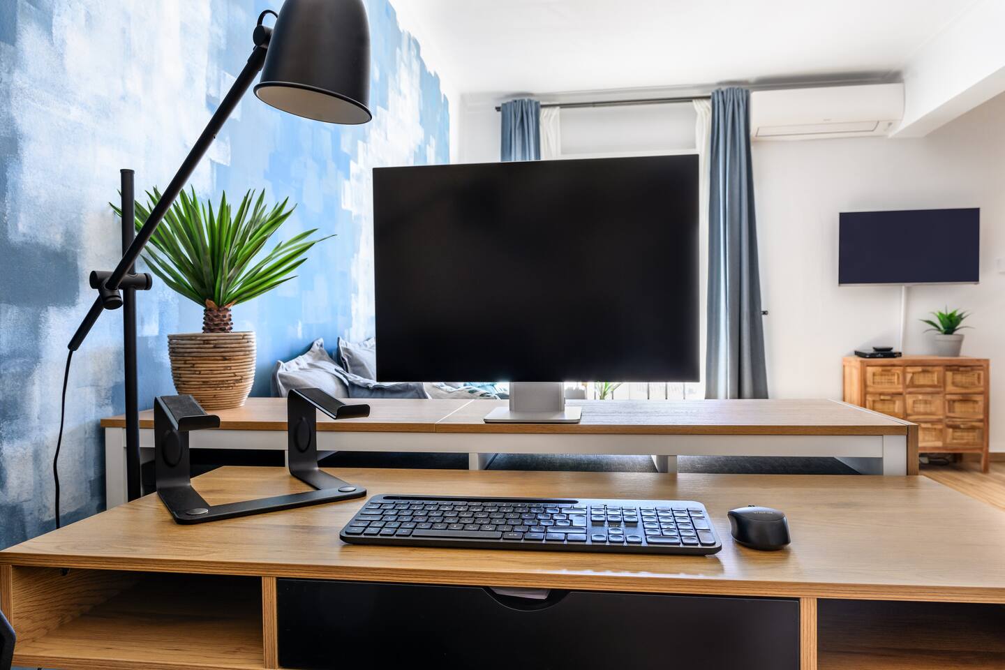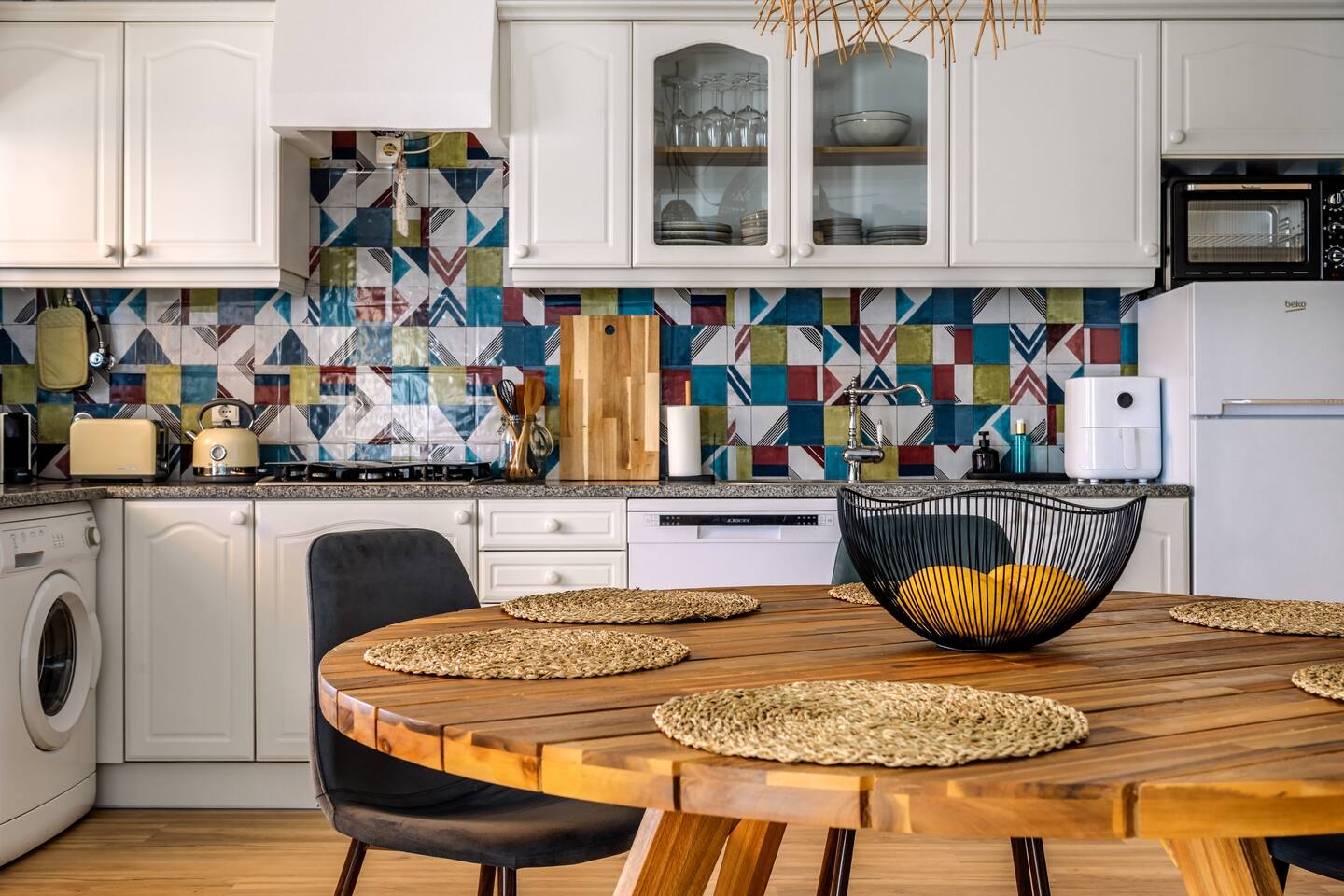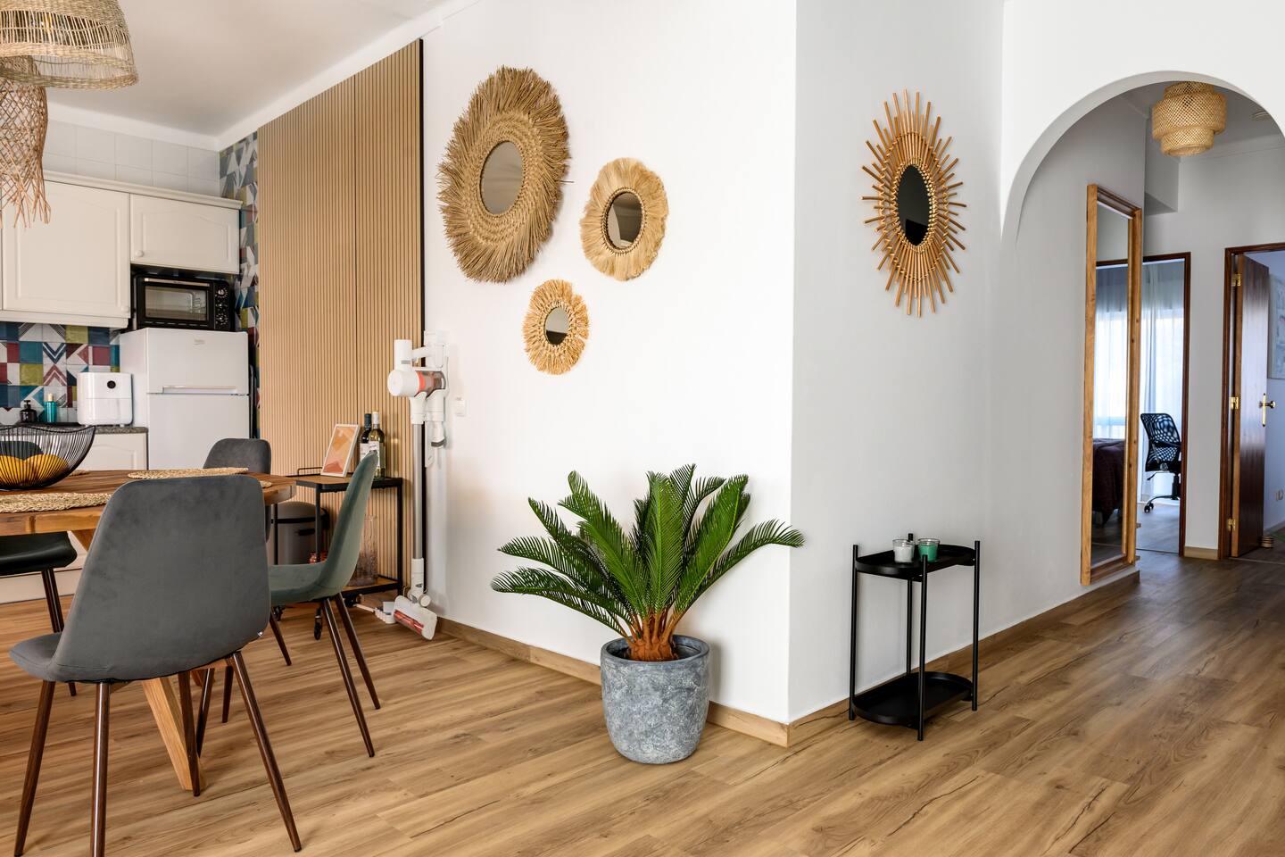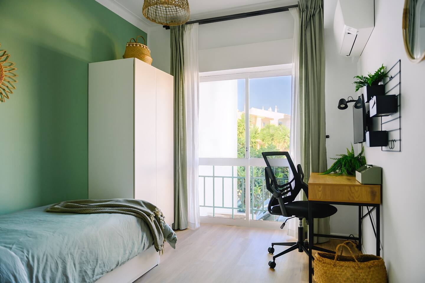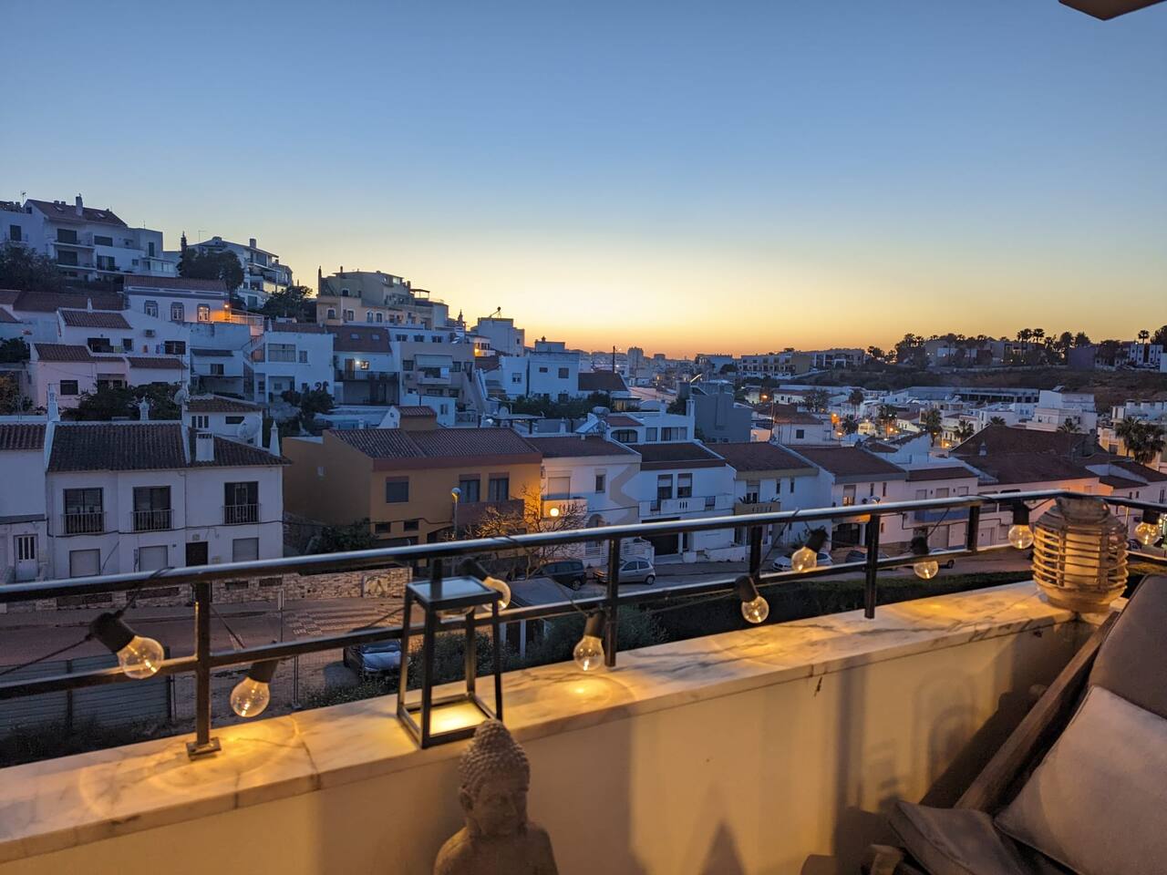 Our apartment features two comfortable bedrooms designed for relaxation and productivity. - The master bedroom offers a spacious queen-sized bed with a spacious cupboard to host your belongings. - The second bedroom is versatile with an expandable bed that comfortably accommodates either one (single) or two people (queen-sized). It also features a cupboard, a working desk with a monitor that doubles as a TV for Netflix streaming. Our modern bathroom is also equipped with a standing shower, a sink, heating for the winter months, a toilet, and essential toiletries including a hairdryer. And what we love most - The open-plan living room and kitchen area. Known as the heart of our home, you can relax on the large, comfortable sofa (which doubles as a sleeper sofa) or enjoy whipping up a feast and hosting friends at the large dining area that comfortably seats 6 people. And for those workaholics, there is a segmented workstation that is well-equipped for you to use too. Our kitchen is a chef's dream, fitted with a gas stove, a fridge, an oven, an air fryer, and all necessary cookware and cutlery, including wine glasses for the wine lovers among you. Last but not least, step out onto our spacious balcony, which offers stunning views of the city of Ferragudo and magnificent evening sunsets. Choose between lounging on the relaxing chair basking in the sun or settling down at the table with a glass of local wine.