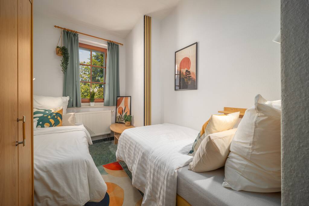 ποΈ What Youβll Find in This Flat: β Comfortable box spring bed (2 x 90x200 cm) β Extra-long duvets (2 x 150x220β―cm) β Minifridge. β Nice Garden View β Bathroom with standing shower, toilet β WiFi and TV β Working station with chair β Thoughtful design with a homely touch β Additional Amenities in the House: β Nespresso coffee machine in the common area β Books and travel guides about Freiberg β Iron and drying rack (on request) β Hammock for the garden (on request) β Shared washing machine (on request) β Baby cot and high chair (on request) π³ Shared Outdoor Spaces: Guests have access to a lovely shared garden, perfect for enjoying a quiet moment with a book or a morning coffee. A shared parking area is also available, making your stay even more convenient.