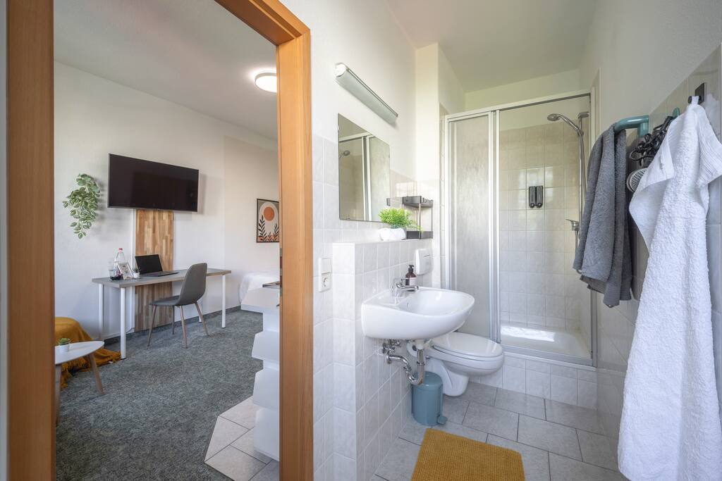 🛏️ What You’ll Find in This Flat: – Comfortable queen-sized box spring bed (140x200 cm) – Extra-long duvets (2 x 150x220 cm) – Small kitchenette with stove, fridge, etc. – Nice Garden View – Working station with chair – Bathroom with standing shower, toilet – WiFi and TV – Thoughtful design with a homely touch ☕ Additional Amenities in the House: – Nespresso coffee machine in the common area – Books and travel guides about Freiberg – Iron and drying rack (on request) – Hammock for the garden (on request) – Shared washing machine (on request) – Baby cot and high chair (on request) 🌳 Shared Outdoor Spaces: Guests have access to a lovely shared garden, perfect for enjoying a quiet moment with a book or a morning coffee. A shared parking area is also available, making your stay even more convenient.